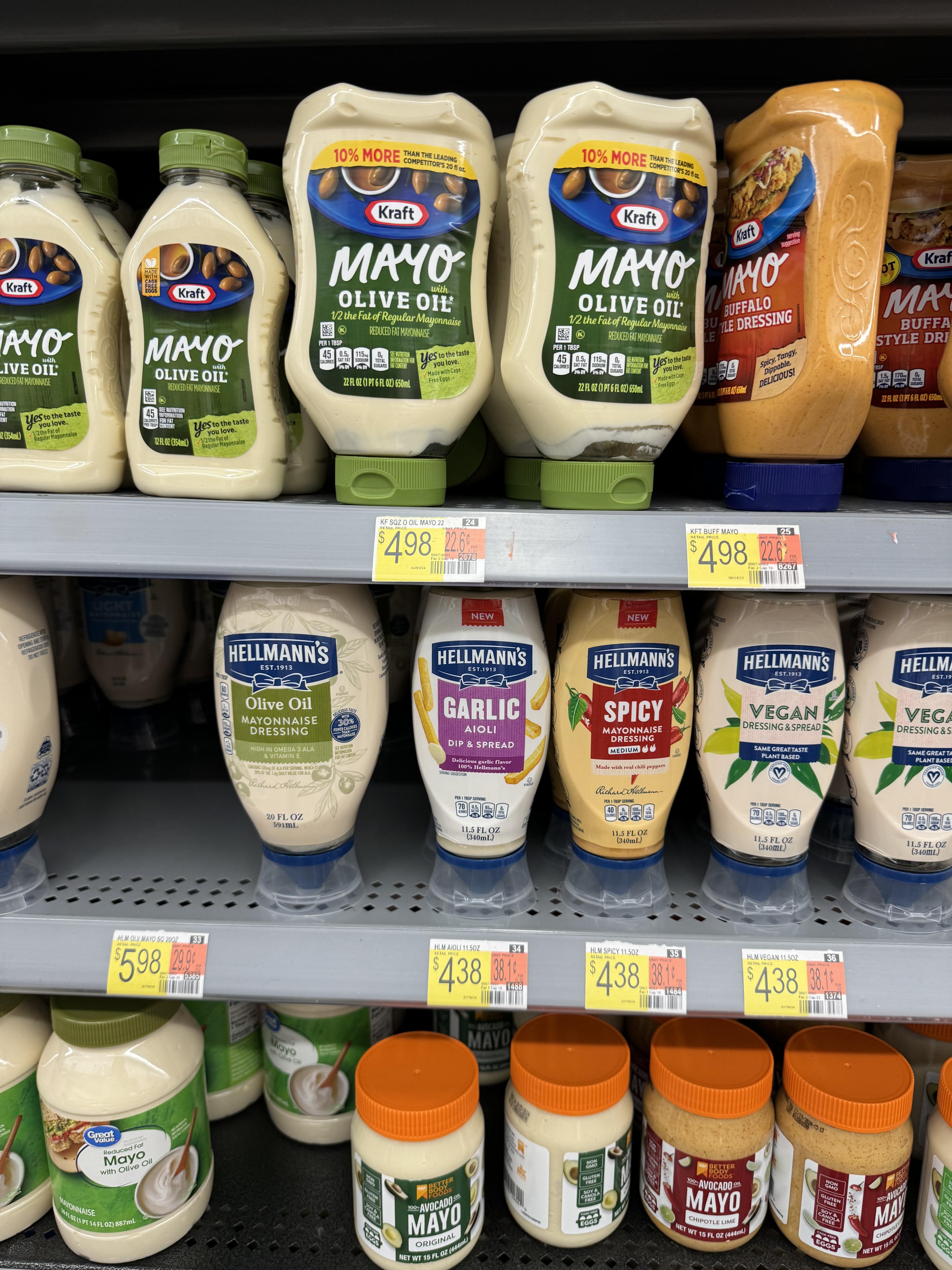 마요네즈를 살려고 보니 역시나 내가 평소에 사던 거 말곤 살 게 없다. 올리브 오일로 만들었다고 되어 있는 것도 성분표를 보면 올리브오일만 있는 게 아니라 카놀라유나 다른 몸에 안좋은안 좋은 기름들이 같이 들어있고 계란도 그냥 일반 계란이 들어있다. 그리고 cage free 계란으로 만들었다고 되어 있는 것들도 보면 다 안 좋은 기름들이 들어있다.