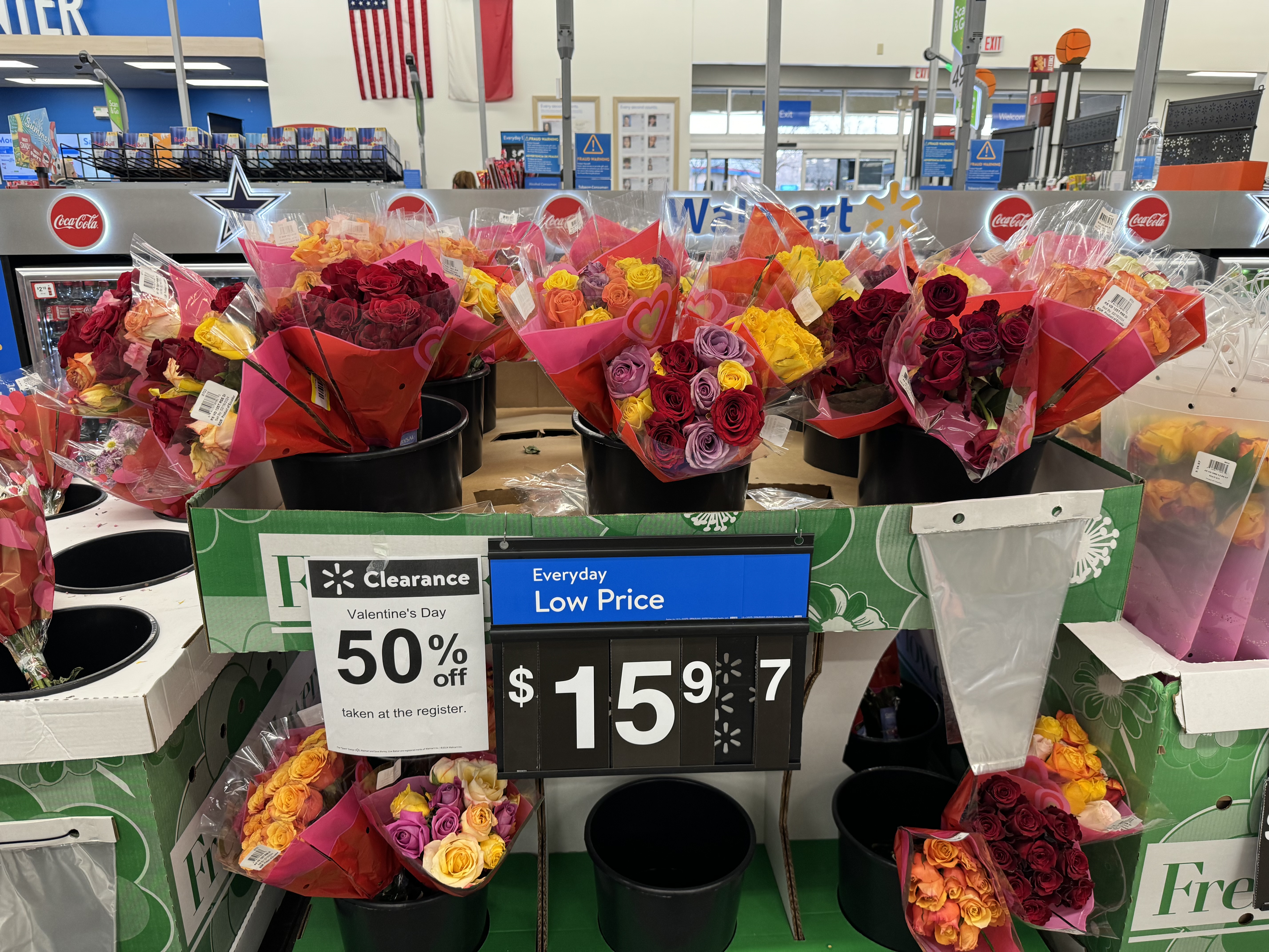 계산대 근처에 마침 며칠 전 발렌타인 데이였어서 그런지 발렌타인데이 꽃들이 50% 세일하고 있었다. 사고 싶었지만 다 상태가 그렇게 좋지 않아서 한참을 아쉽게 쳐다만 보다가 그냥 왔다. 발렌타인데이에 꽃 선물도 못 받은 불쌍한 나.. 이러면서..ㅎ