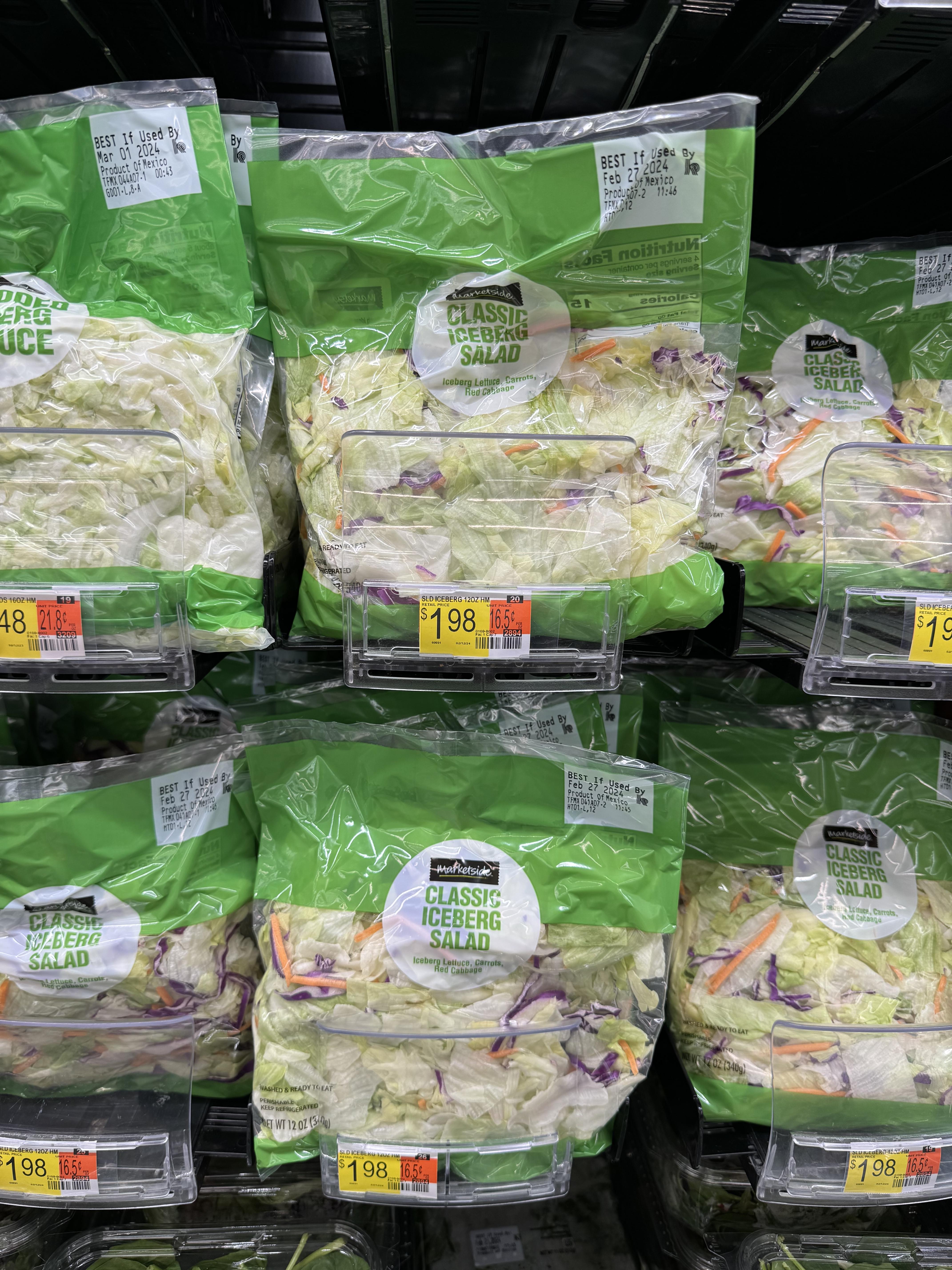 양상추도 샀다. 양상추 사서 씻는 게 귀찮고 시간도 없어서 씻어져 있는 걸로 샀다. 보통 때 샐러드 해 먹을 땐 위에 있는 로메인상추를 사지만 햄버거엔 보통 양상추를 넣기 때문에 아래에 있는 iceberg 샐러드로 샀다.