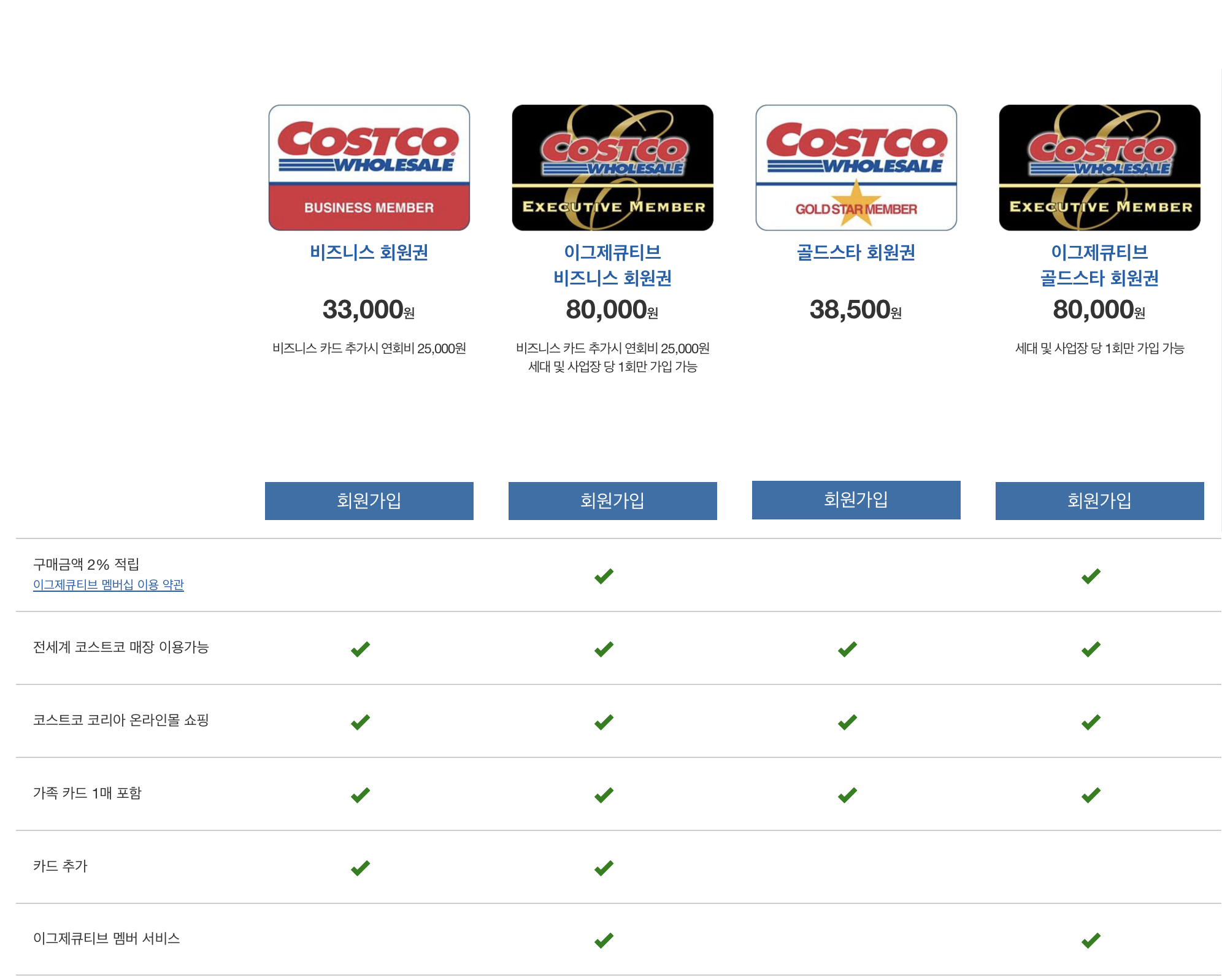 먼저 한국 코스트코 회원 가입비를 보면,