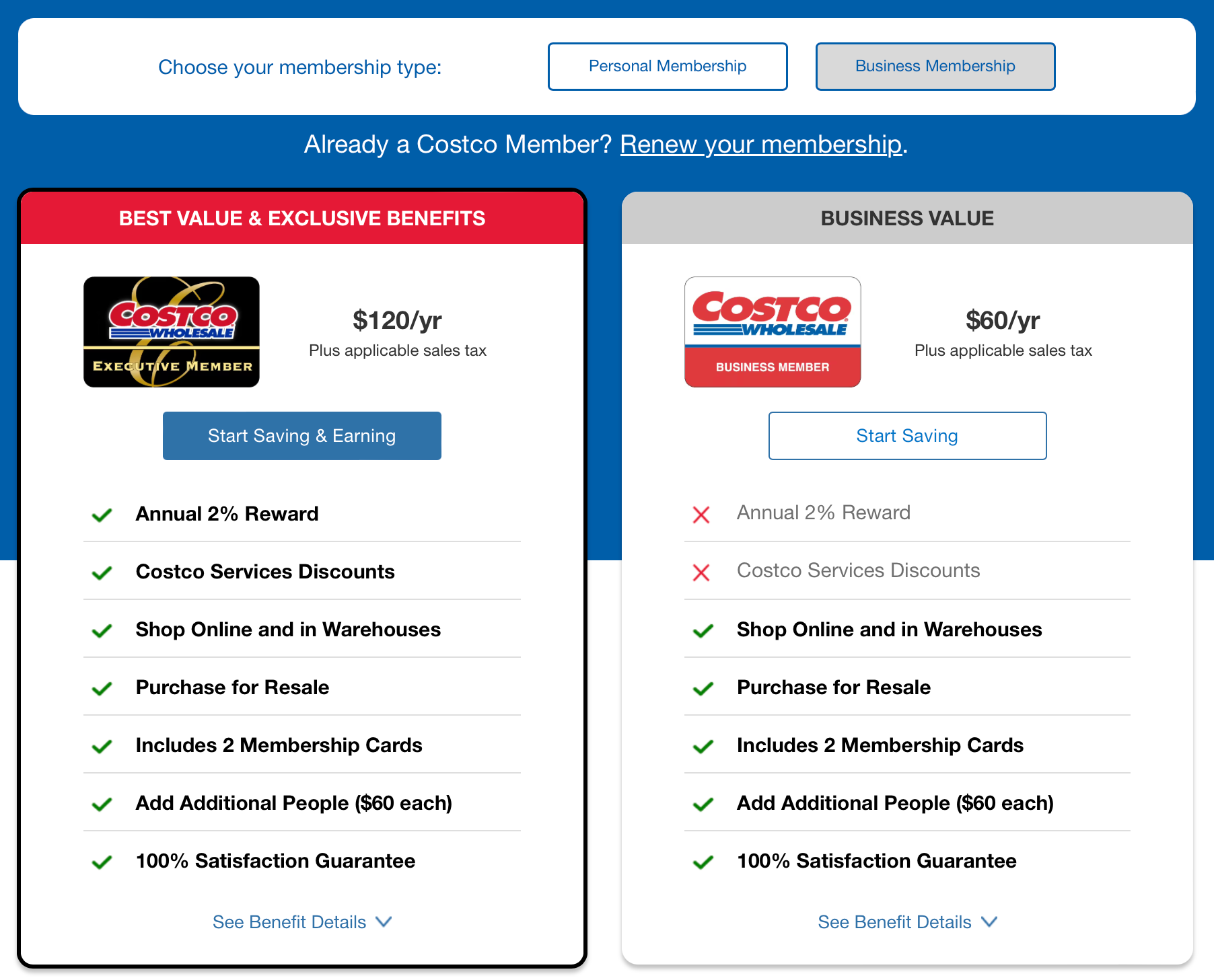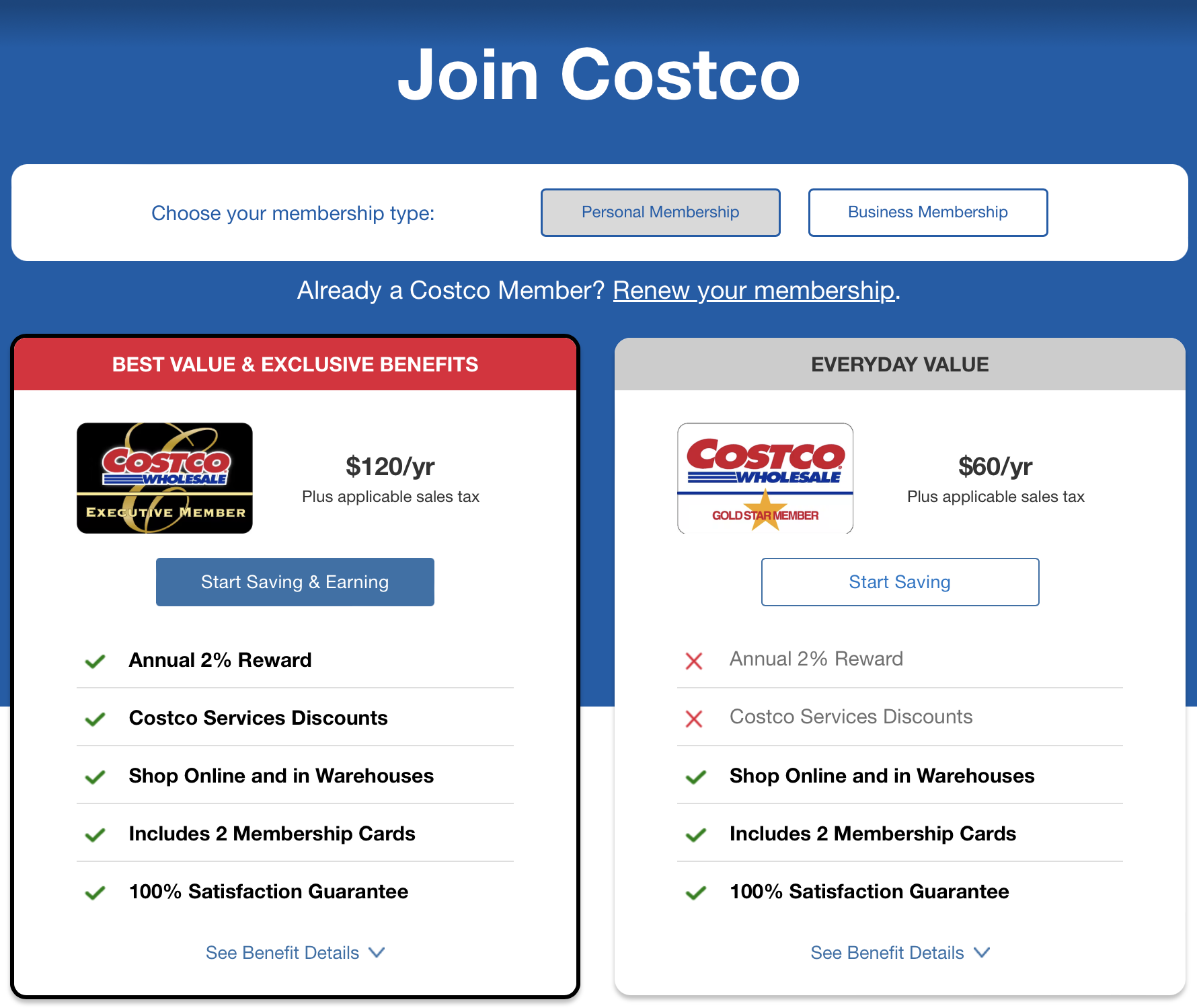 그럼 이번엔 미국 코스트코 홈페이지(https://www.costco.com)에서 회원 가입비를 보면,