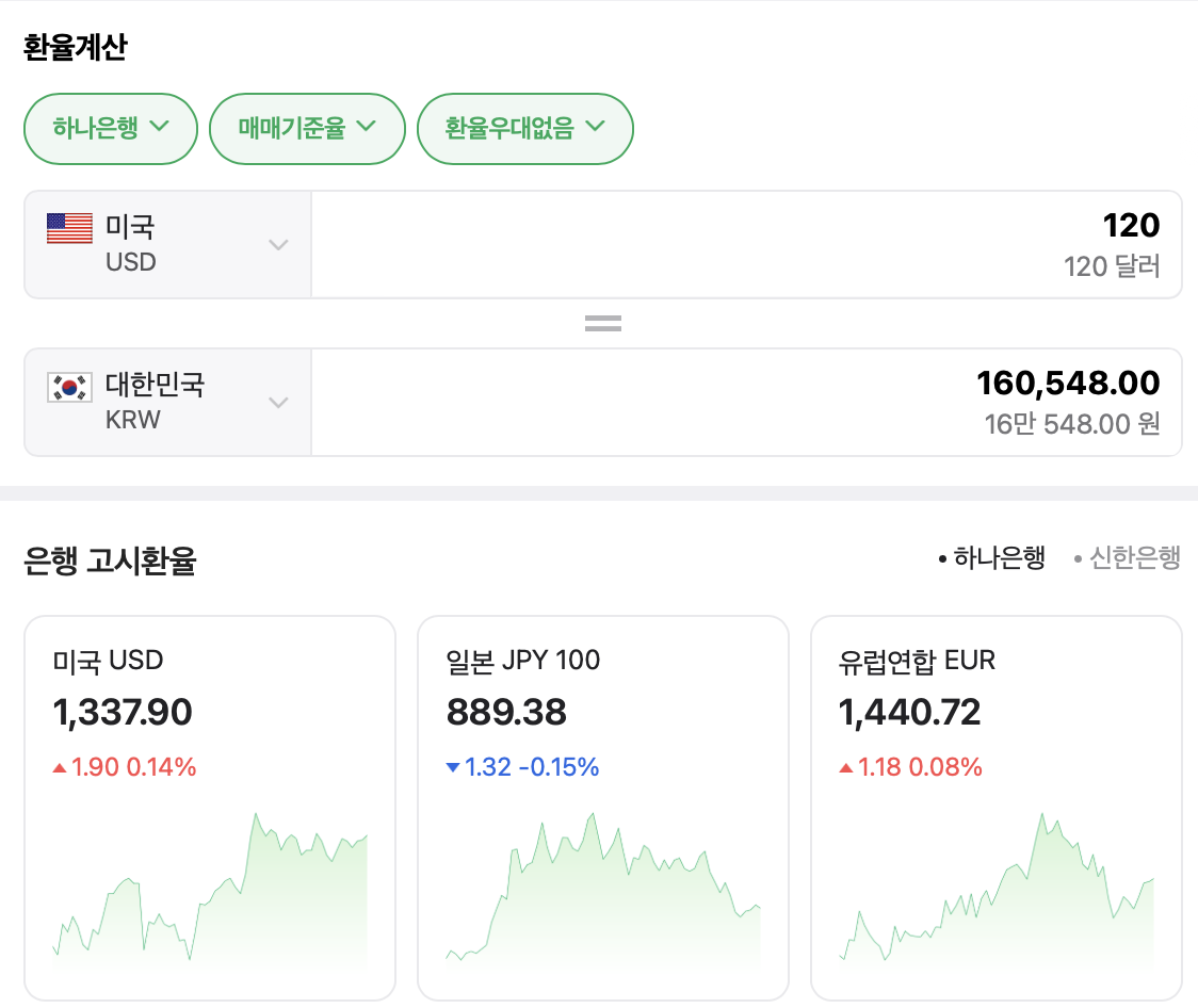 또한 $120은 160,548원이라고 나온다.
